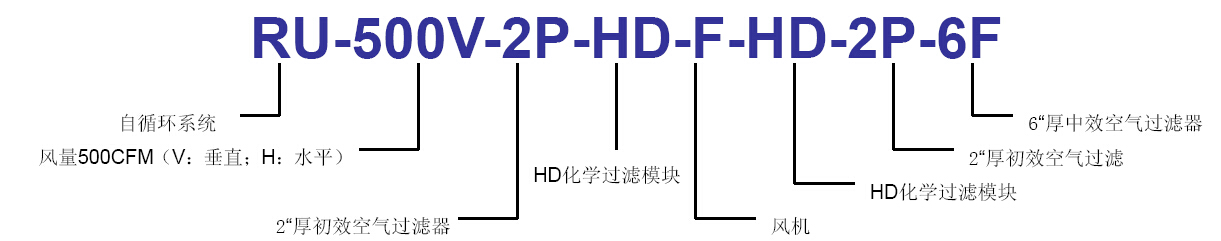 RU 自循环过滤设备由装在设备轨道系统上的HD 化学过滤模块、初效和中效空气过滤器组成。